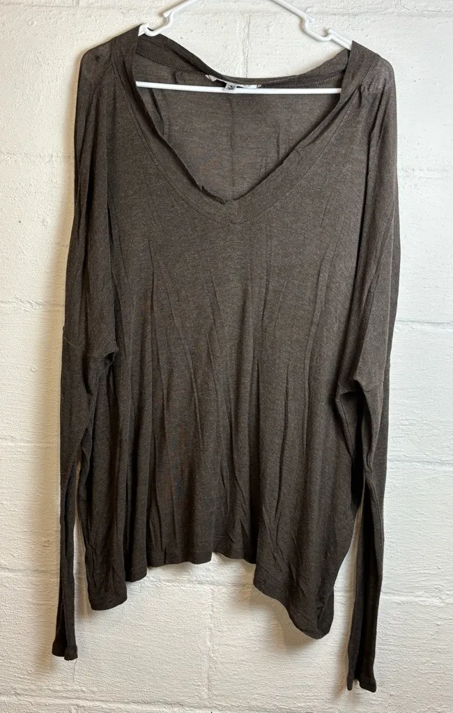 Cabi Lightweight Brown Casual Vneck Long Sleeve Sharkbite Hemline Top Size Small GUC/ no stains or... Show more