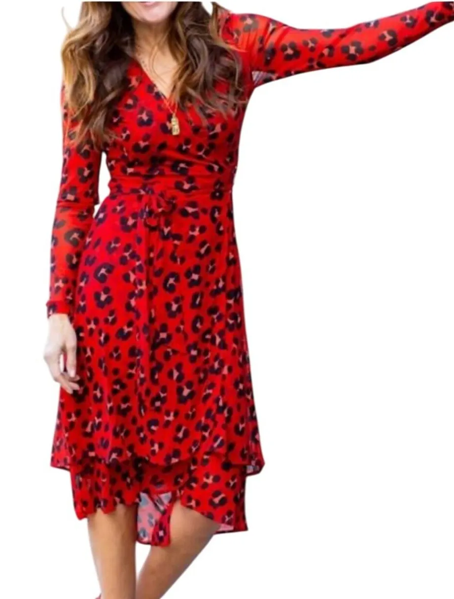 Style: Wrap Dress Dress Length: Midi Color: Red Department: Women Sleeve Length: Long Sleeve Pattern... Show more