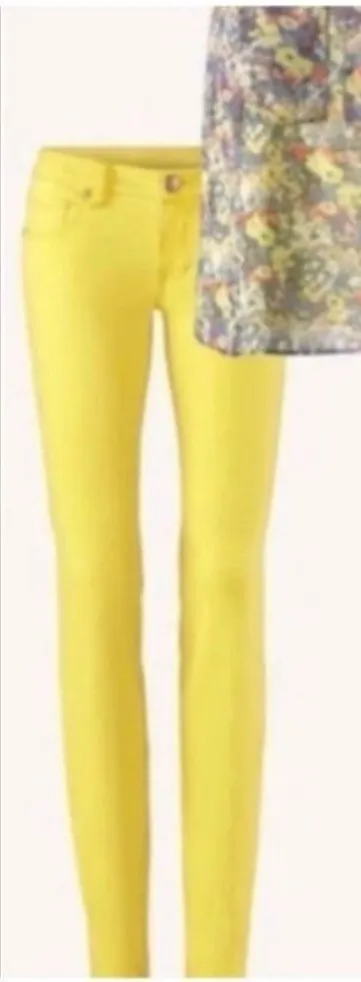 CAbi citron, summer yellow, low rise, stunning, eye popping, skinny jeans. Pairs well with a flowy b... Show more
