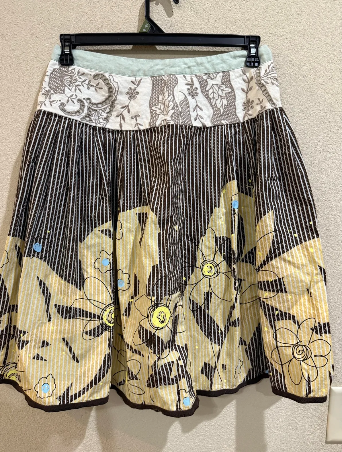 Unique A-line skirt, a stylish addition to any wardrobe. Featuring a delightful mix of brown and bei... Show more
