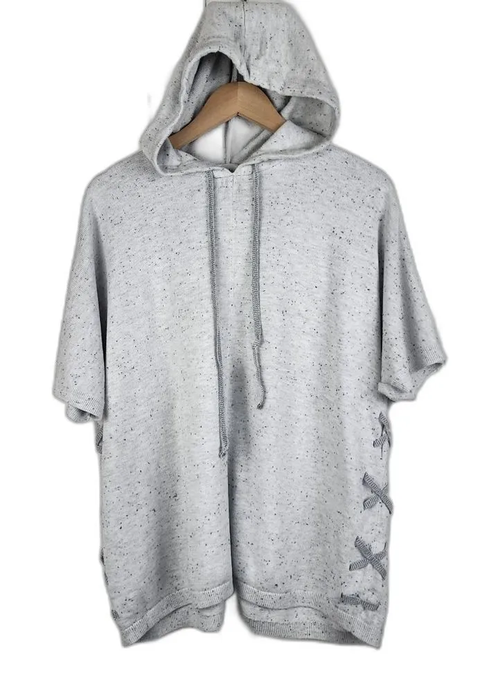 Cabi Hooded Oversized Sweater Short Sleeve Speckled Gray Size XS Loose Fit