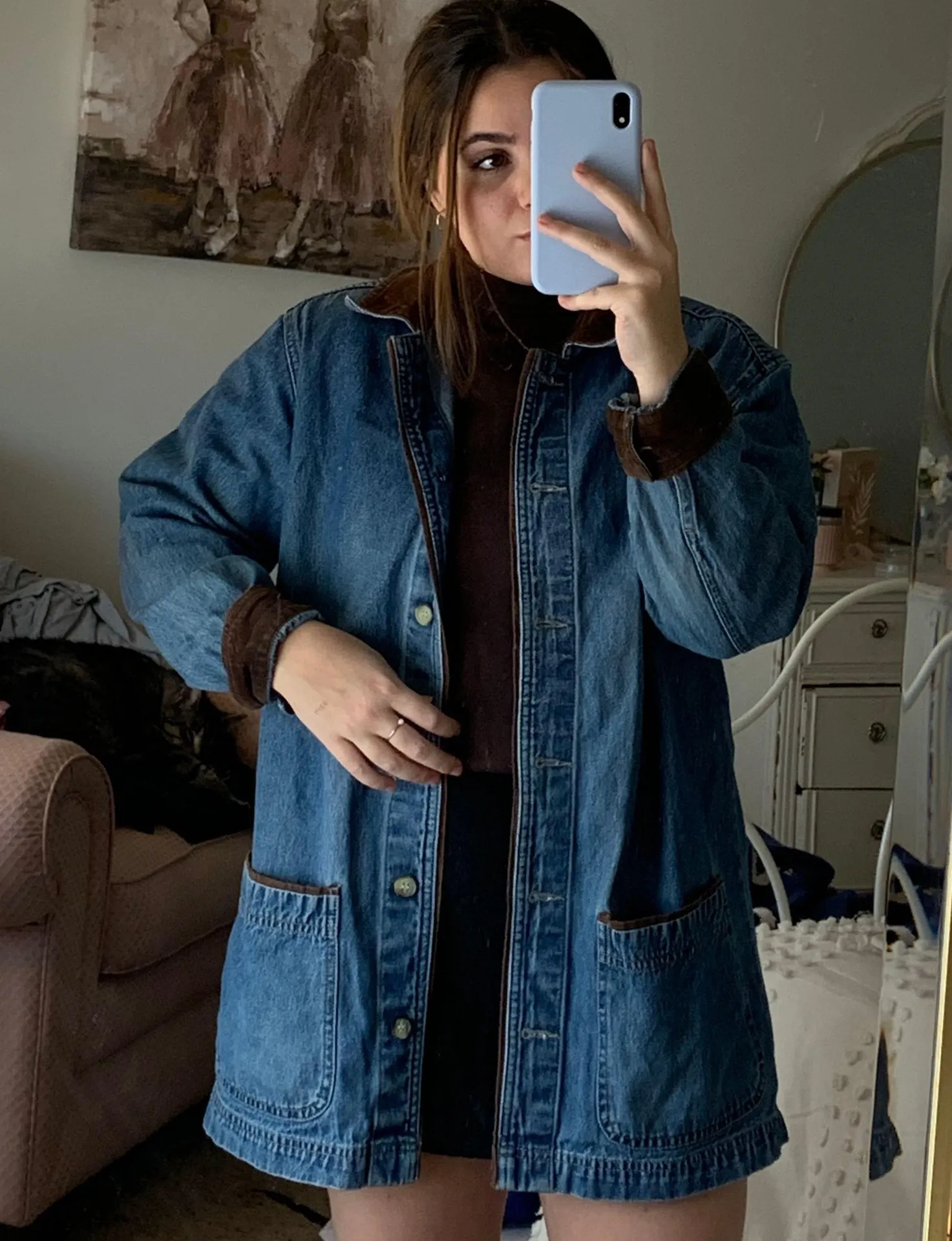 Cabin Creek denim jacket with brown corduroy detailing Size S Wear on the elbows (pictured) but other than that great condition I’m short so the sleeves are full length on me but would likely hit a little above the wrist if you’re taller Message me for any questions ☺️