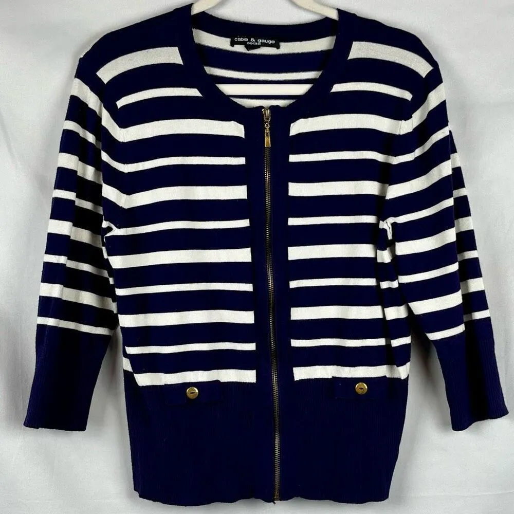 Cable & Gauge Petite Striped Nautical Full Zip Cardigan Jacket PXL Blue Size undefined - $23 - From Carlie