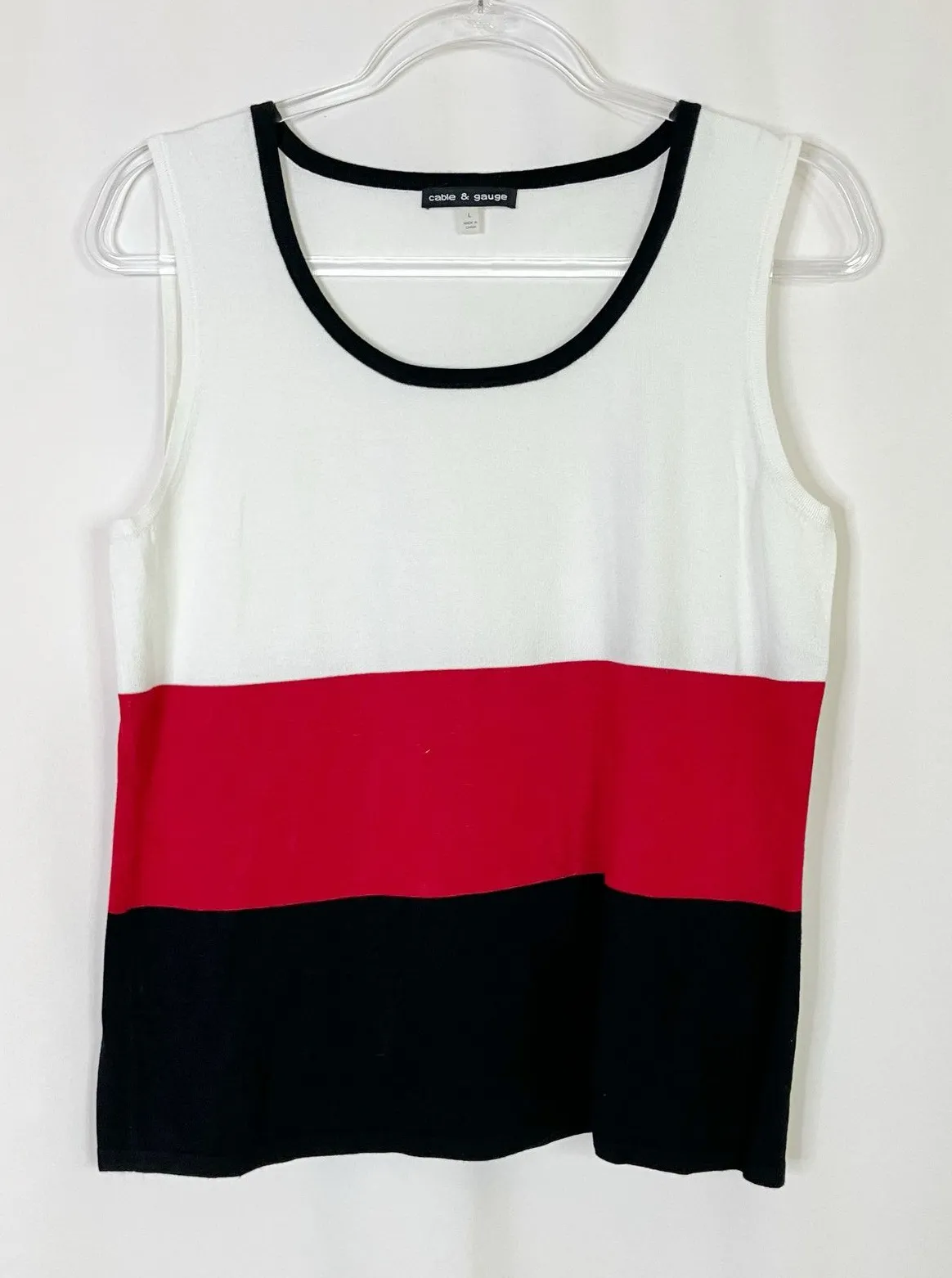 Cable & Gauge Colorblock Knit Tank Top White Red Black Rayon Blend Womens Large - $18 - From Emily