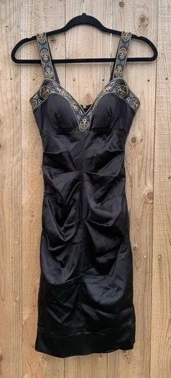Cache black cocktail dress size 2. Preowned great condition. Has gold & silver embroidery. Self: 63%... Show more