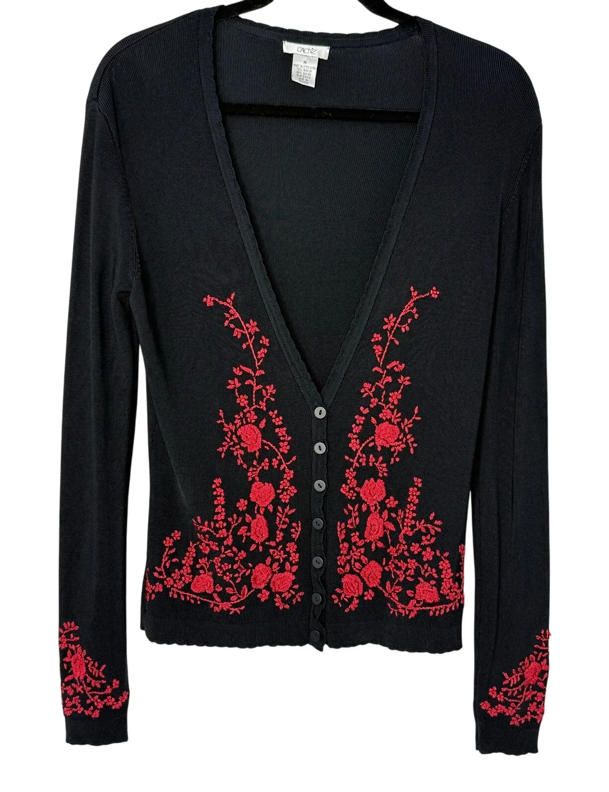 Beautiful vintage Cache cardigan featuring bold red floral embroidery for a romantic, feminine look.... Show more