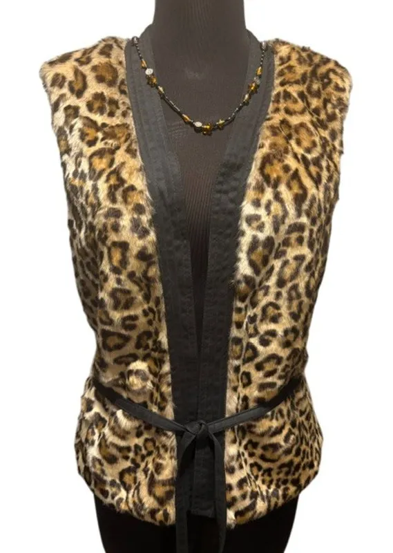 CACHE COUTURE CHEETAH Faux FUR VEST / JACKET and REMOVABLE SELF BELT FULLY LINED NEW WITH TAGS $178... Show more