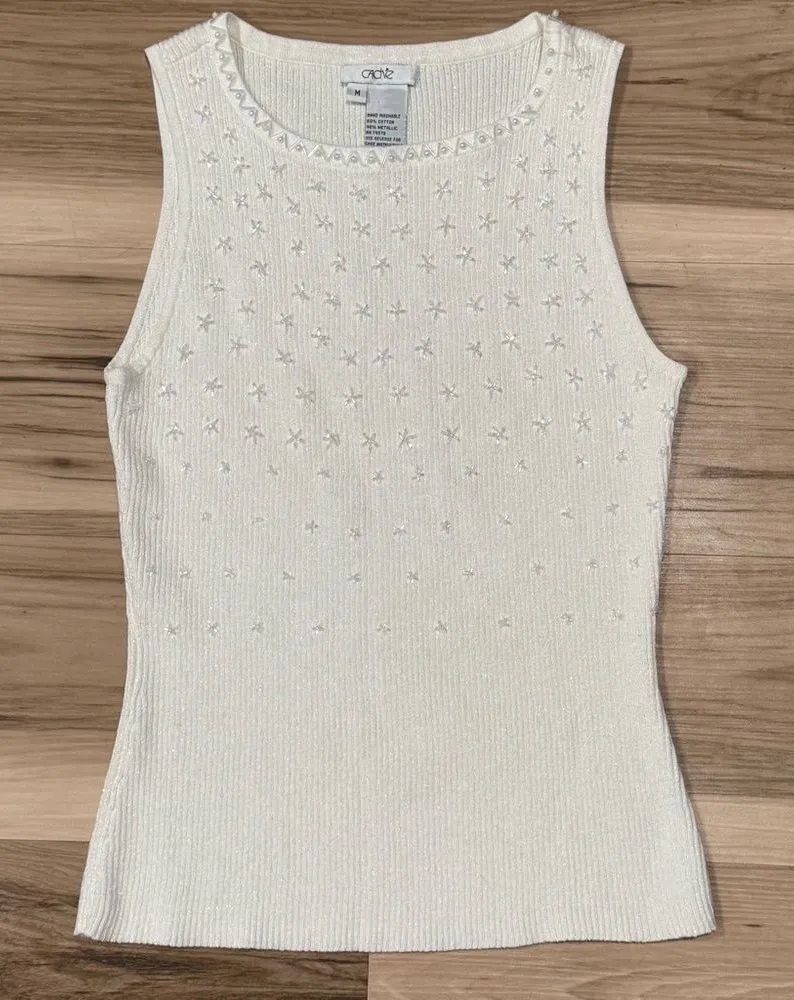 Cache Y2K Vintage Beaded Metallic Stars Sleeveless Trendy Top Women’s Medium Measurements- Pit to Pi... Show more