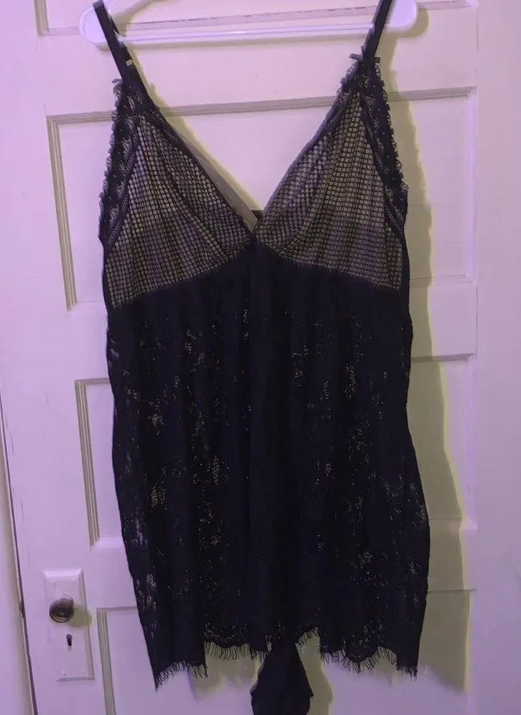 Comes with a thong attatched to the dress, everything is brand new, still has tags! Costs 60$ Originally the size is 26-28 and only lets me tag it as 3x or 4x but I would say it’s closer to a 4x. Sexy black see through lingerie with a cute thong included Perfect to surprise that special someone! -Black & Cream -Lace -See Through -Mesh Thong -Made In SriLanka -MSRP:$59.95 Holiday gift ready!