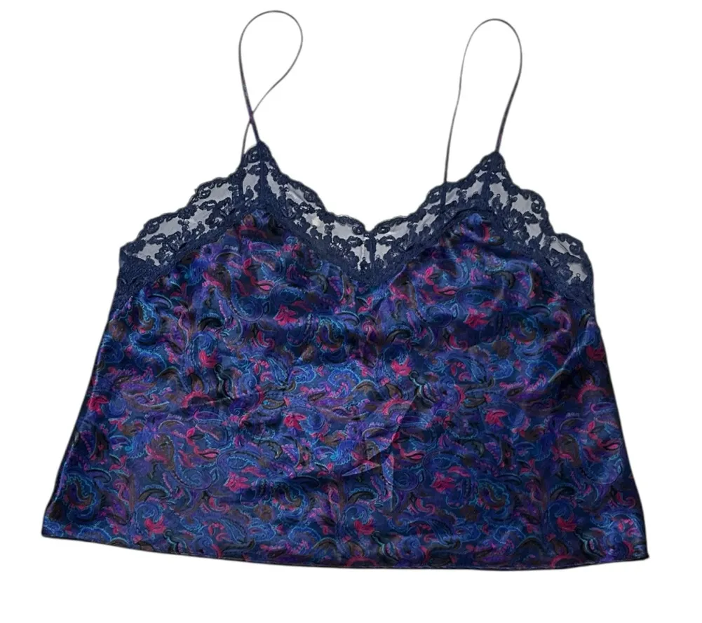 Cacique silky camisole women’s small‎ blue red paisley lace inlet top - $30 - From Candice