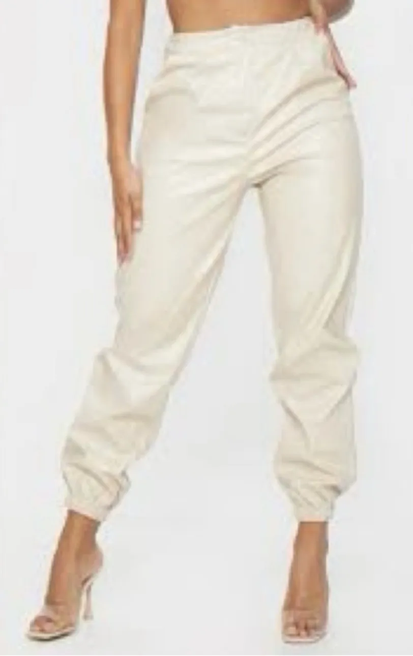 Gorgeous and comfortable faux leather joggers in like new condition Ivory or cream in color High ri... Show more