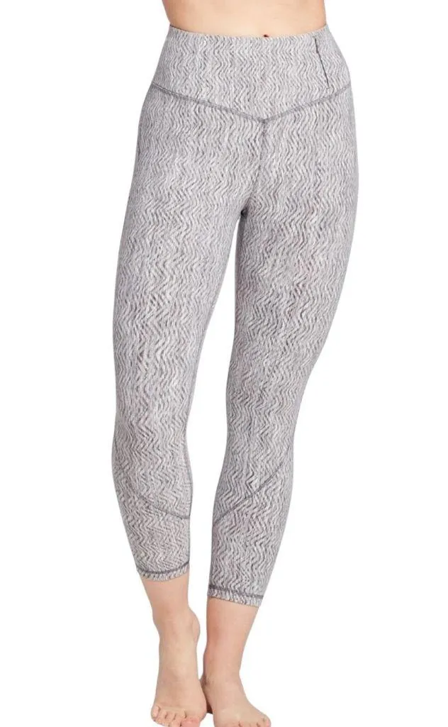 CALIA by Carrie Underwood Essential Jacqard Leggings Cropped Great used condition, size S Stretch Front zippered pocket Textured/Jacqard ZigZag print Color Gray High waist Wide waistband 86% Nylon 14% Spandex Measured flat: waist 11.5" rise 10" inseam 23.5" 9.3