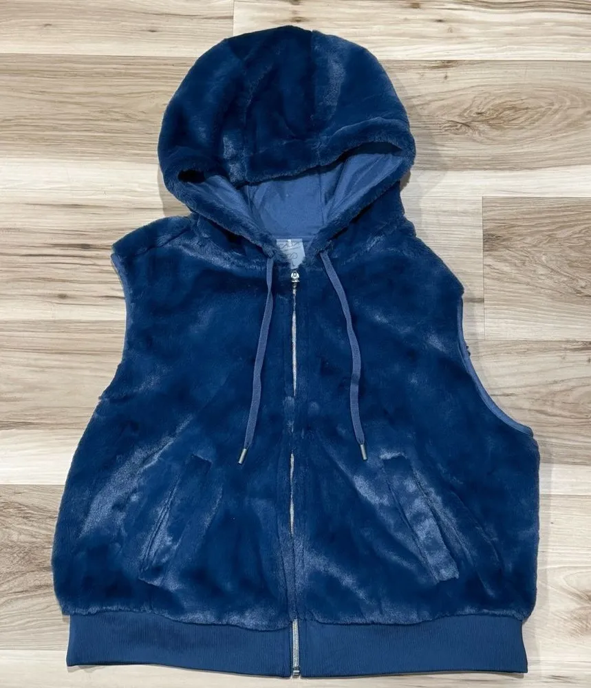 Calia by Carrie Underwood Faux Fur Blue Hooded Vest Women’s Large Stylish blue hooded vest. Soft and... Show more
