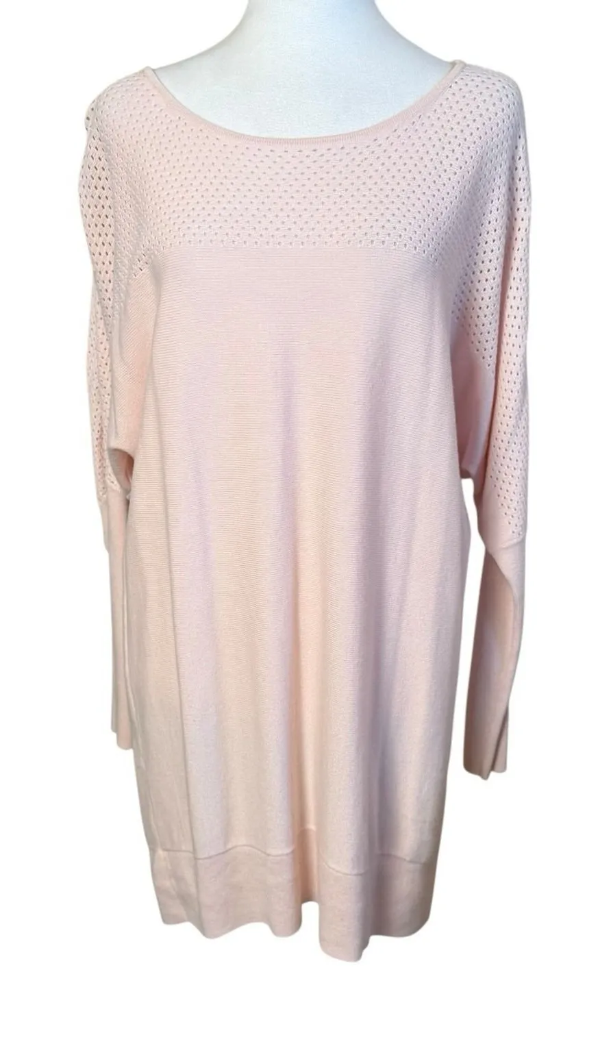 Excellent Pre-Owned Condition (see pics for details) Features: •Style Profile: Calia By Carrie Underwood Light Pink Tunic Sweater Top Large Pastel Lightweight •Flaws: No holes, stains, or tears •Please see photos for measurements (in inches) laying flat- Pit to Pit: 22" Sleeve: 23" Shoulder to hem: Front 31" Back 33.5" •Washing Instructions: Hand Wash Size: Large Color: Pink Tags: Pastel, Easter, Spring, Coquette, Cottagecore, Soft, Casual, Classic, Tunic Smoke free home. I am happy to answer your questions and am open to reasonable offers! Super fast shipping: I ship out the next business day! Please note that all pre-owned items may have slight imperfections.