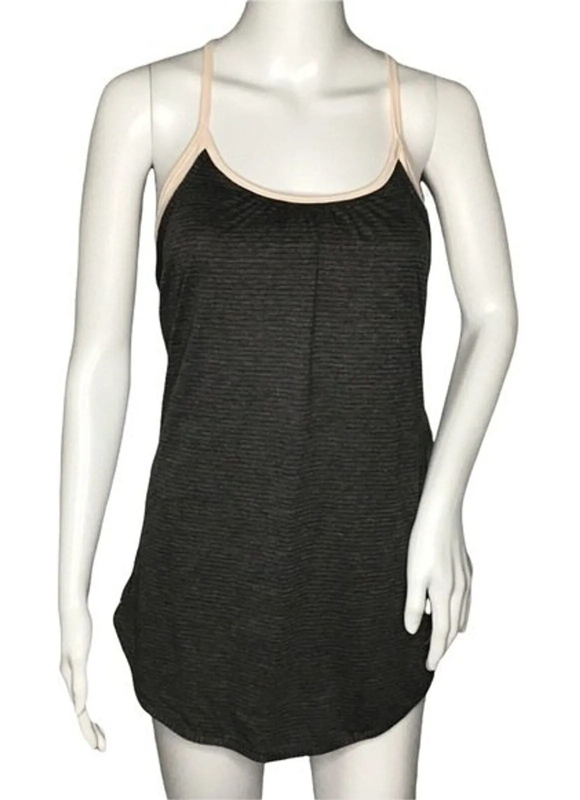Calia Tank Womens XS Gray Stripe Pink Sport Bra Criss Cross Workout Athleisure Women's Size XSmall 2 in 1 Tank Adjustable Straps Round Hem Scoop Neck Pullover Style Stretch Measurements are Approximate: Length 25" to 30" Armpit to Armpit 16" plus stretch Gently Used Condition. No Rips Tears or Stains (1566)