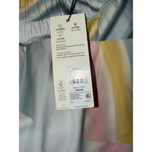Energize your active life with these CALIA by Carrie Underwood athletic shorts. Experience ultimate comfort and freedom with the BodyFree odor control and quick-drying fabric, designed to keep you feeling fresh through every workout, run, or training session. The layered short design with an inner brief provides extra coverage and support, ensuring you can move with confidence. These shorts feature a vibrant abstract print in soft blues, pinks, yellows, and grays, adding a stylish flair to your activewear collection. Perfect for hitting the gym, going for a jog, or enjoying a casual day out. Department: Women Style: Athletic Performance/Activity: Running & Jogging, Gym & Training Fit: Athletic Material: Spandex, Polyester Fabric Type: Mesh Features: Breathable, Moisture Wicking, Elastic Waist, Quick Dry, Lightweight Pattern: Geometric Occasion: Activewear, Casual Closure: Drawstring Season: Summer, Spring Keywords: CALIA, Carrie Underwood, athletic shorts, running shorts, training shorts, workout shorts, activewear, performance shorts, odor control, quick dry, abstract print, summer shorts, athleisure
