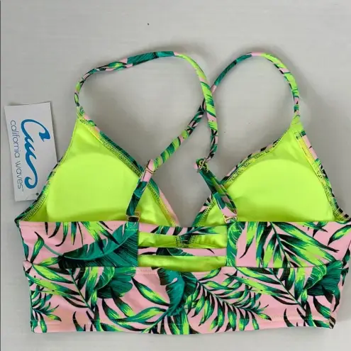 Condition: New With Tags Size: Medium Color: Pink / Green Embrace the summer vibes with California Waves' stunning bikini top, featuring a lively pink base adorned with vibrant green tropical leaf patterns. This top includes a classic triangle top with adjustable straps, ensuring a comfortable and secure fit. The bold botanical design adds a fresh, contemporary touch, perfect for making a splash at the beach or pool. Color may vary due to monitor device or settings.