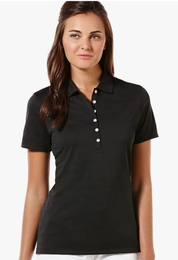 Fabric type 100% Polyester Care instructions Machine Wash Origin Imported Closure type Button About this item * MOISTURE WICKING: This women's golf shirt features moisture wicking Opti-Dri technology that moves sweat away from your body, while allowing optimal breathability, so you can always finish your game fresh and comfortable. * VENTILATED FOR YOUR COMFORT: The Callaway short sleeve golf shirt has ventilated fabric that circulates air to transfer heat away from your body to keep you cool. With this golf shirt, those hot days won't stop you from working on your game. * TEXTURED: This collared golf shirt features a textured fabric for added visual interest, and offers a roomier fit than classic golf top. * STRETCH: The women's polo shirt is made from stretch fabric that allows for a full range of motion for smooth swings on every hole without ever feeling constricted. * GENEROUS FIT: This style was created with a more generous fit to comfortably accommodate more body types.
