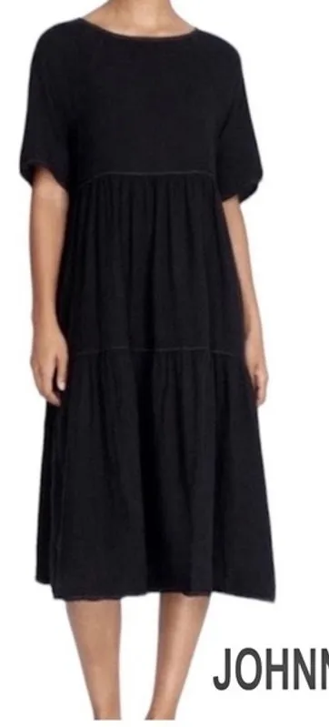 Calme by Johnny Was Black Midi Dress. Raglan Short Sleeves. Tiered Tent Silhouette. Black Gauze 100%... Show more