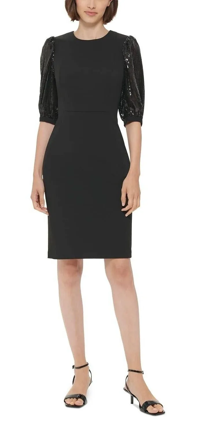 Description: Step into timeless elegance with this Calvin Klein black cocktail dress, featuring a sl... Show more