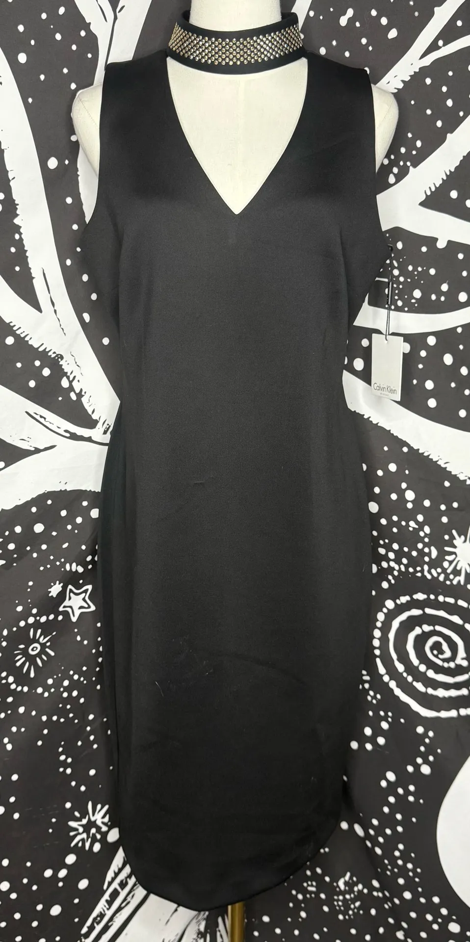 The Calvin Klein Black Sheath Dress is a stylish and trendy choice for a party or cocktail event. Wi... Show more