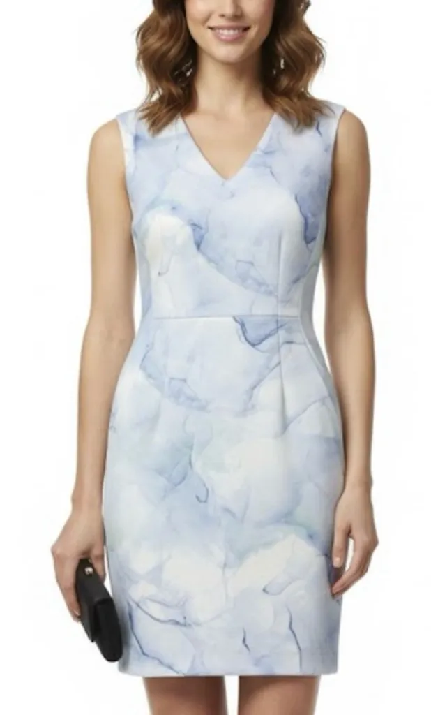 Scuba knit - structured, supportive and slimming V neck Unlined Exposed silver tone back zipper... Show more