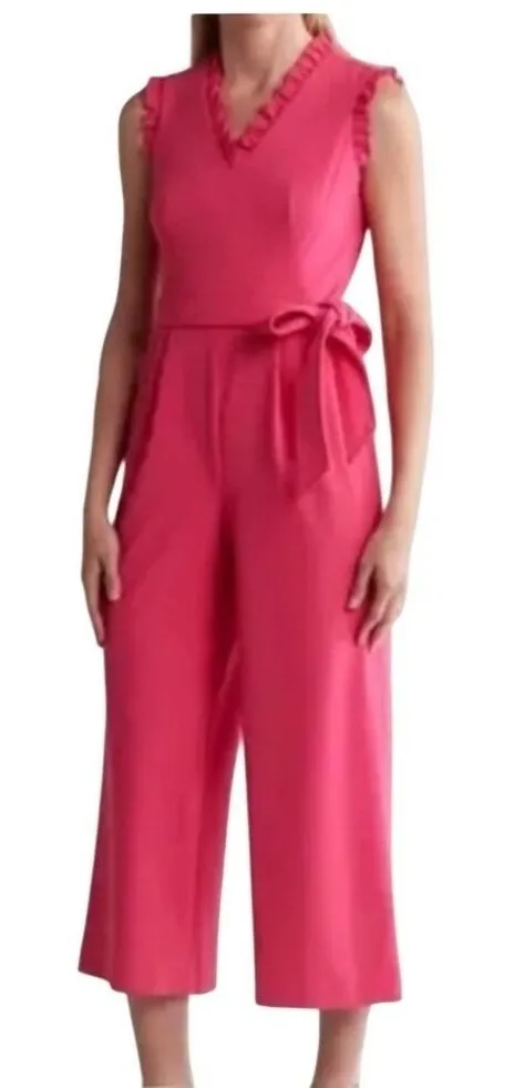 Discover effortless sophistication with this Calvin Klein burgundy jumpsuit. The ruffled neckline an... Show more