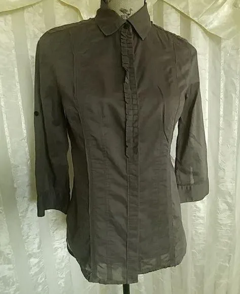 Ladies button-down fitted shirt By Calvin Klein Taupe in color Size S Measures 18" flat across che... Show more