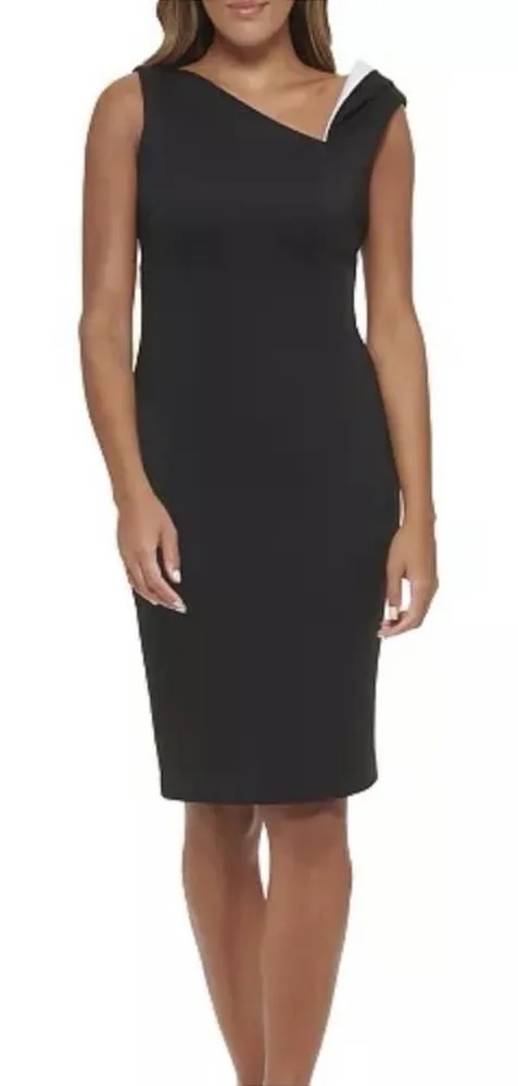 Calvin Klein Black Asymmetrical Neckline Dress Size 8 Black and White Exposed Zipper Back S... Show more