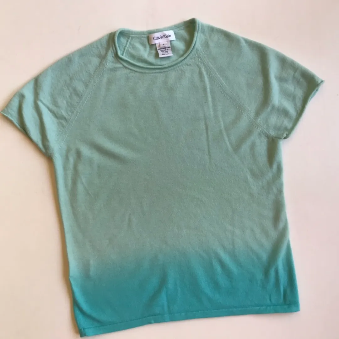 Ombré in color. 100% cashmere. Chest is about 32 inches. Length is about 20. No flaws.