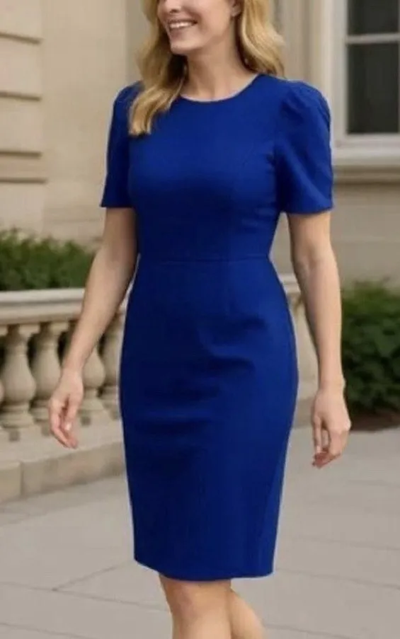 The traditional sheath dress gets a major makeover, Calvin Klein modernizes the look with simple puf... Show more