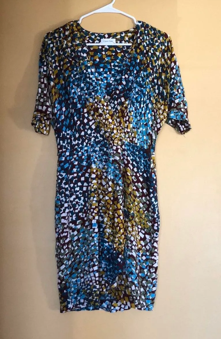 Excellent condition! Beautiful CALVIN KLEIN Colorful Short Sleeve Shirt Dress Size 6! Low cut V-neck... Show more