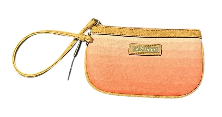 Adorable way to grab and go with this coral ombre zip top wristlet with gold toned hardware. Callout... Show more