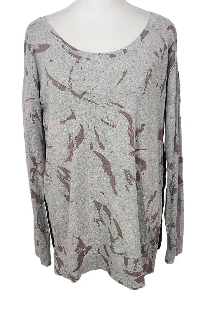 Calvin Klein gray print tee with tracksuit striping down sides. Make me an offer! Neckline: Round S... Show more