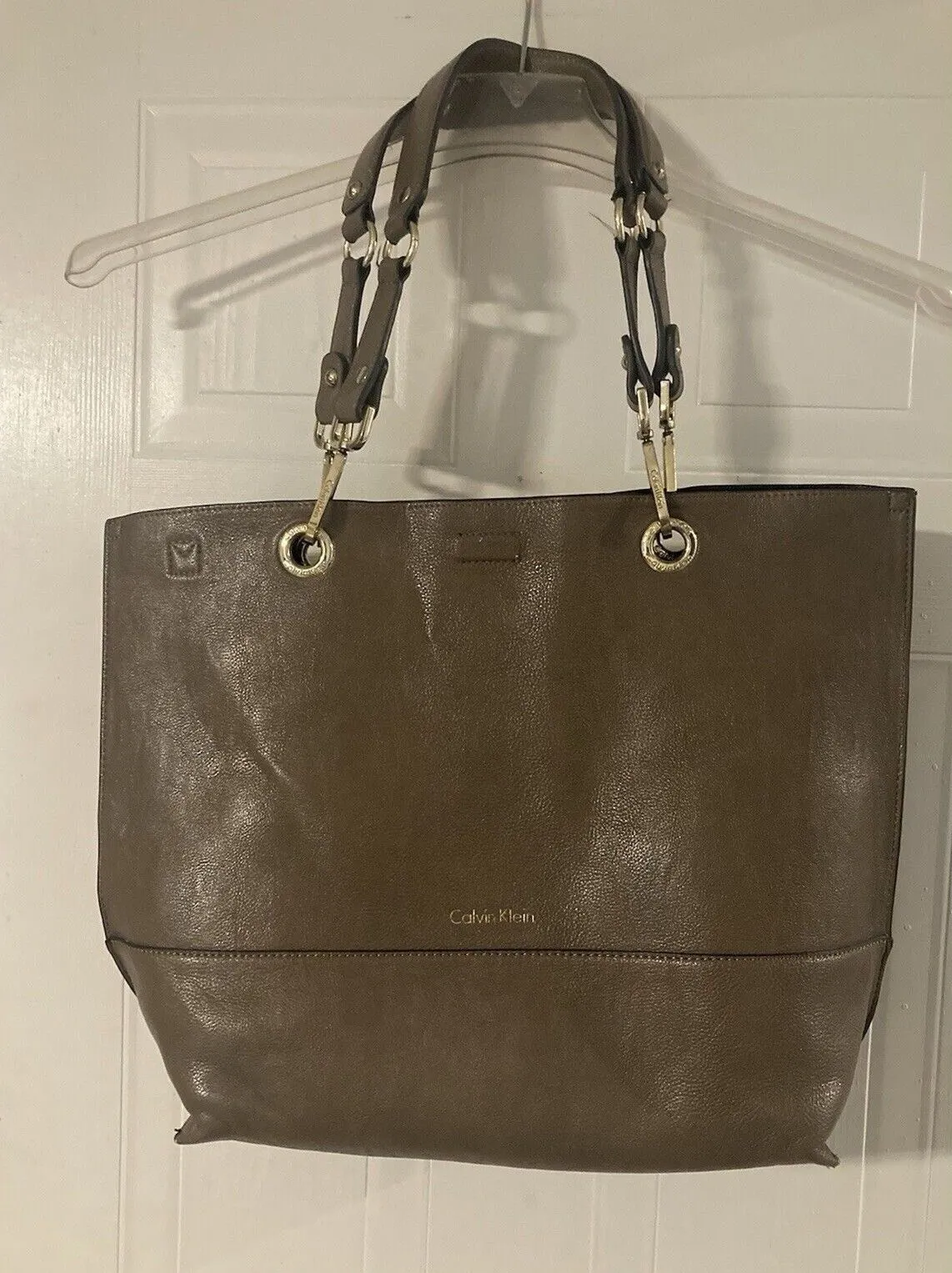 CALVIN KLEIN Brown Taupe Tan Handbag Tote Magnetic Closure Shoulder Bag with Gold Hardware Pre-Owne... Show more