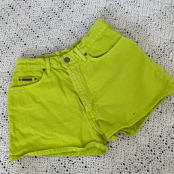 Calvin Klein High Waisted Denim Short Short in the color Neon Green. Vintage. High waist. Calvin Kle... Show more