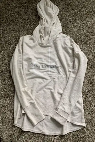 Tan Calvin Klein hoodie. It is lighter weight and length runs a bit longer in back.