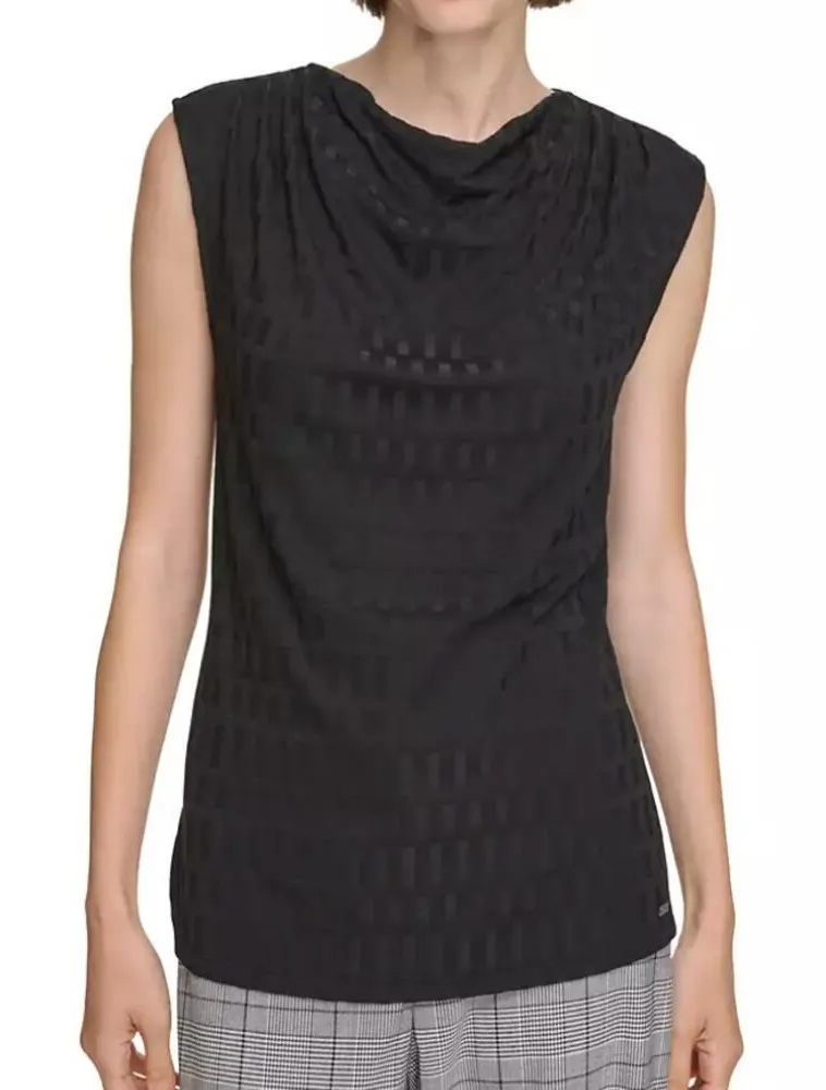 Calvin Klein elevates the classic cowl neck with a square-design jacquard fabric, lending polish and... Show more