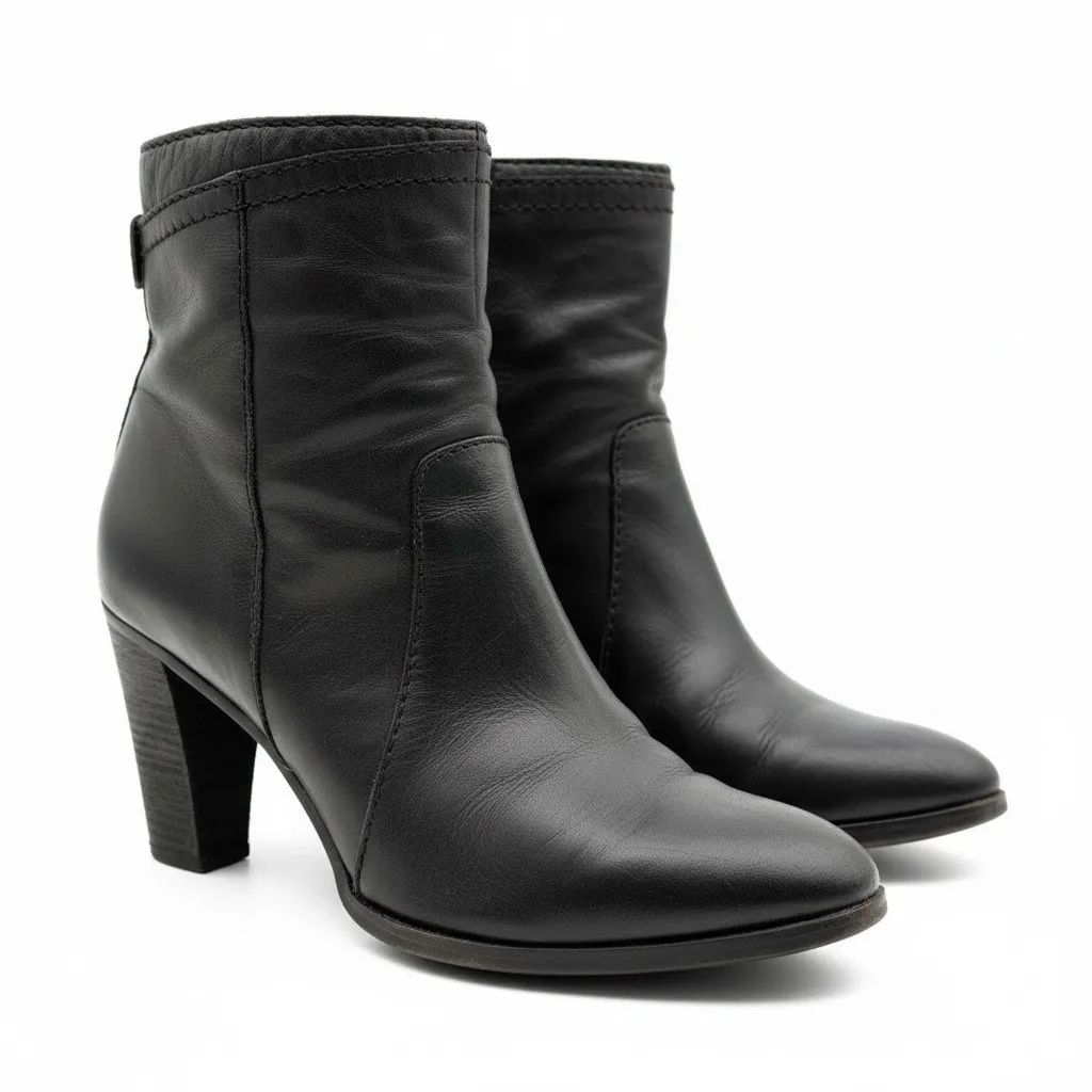 Calvin Klein Jeans 90's Chunky Heel Black Leather Ankle Boots Women's 7.5 3" heel almond toe smooth... Show more