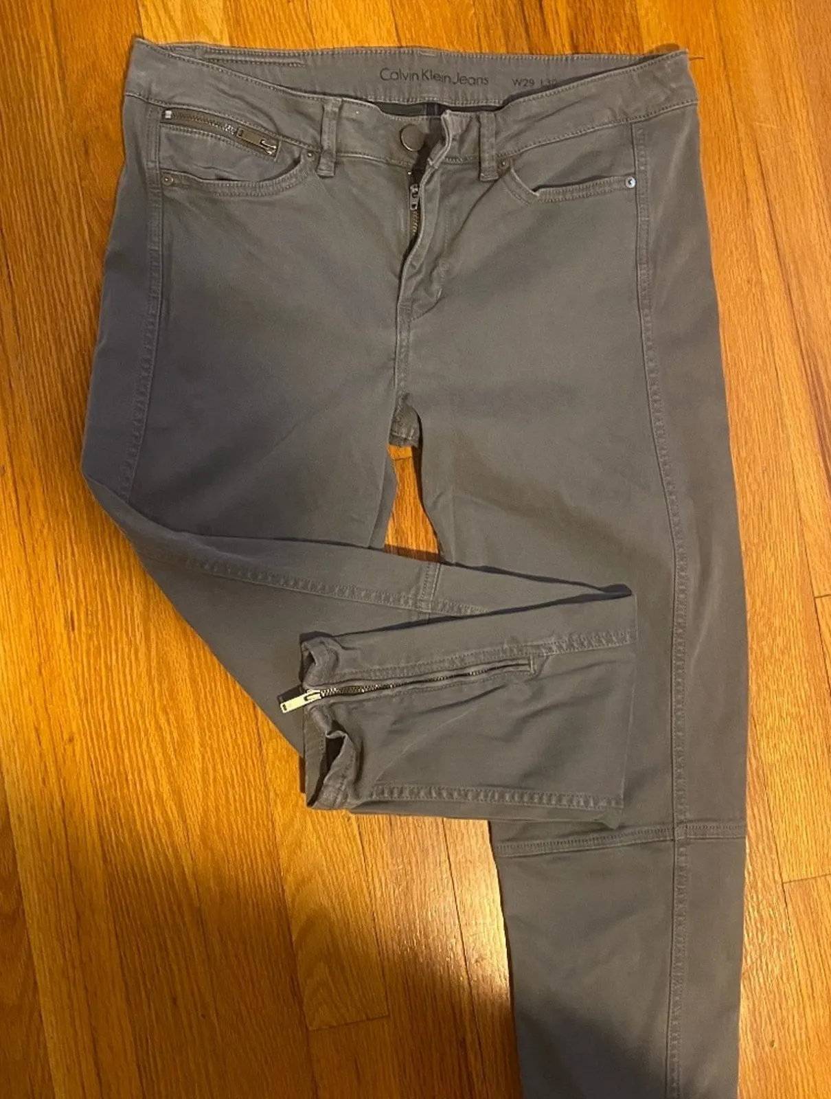 Calvin Klein Mid-Rise Skinny Ankle W/Zipper Jean Size 29x30 Color: Grey Approximate Flat Measureme... Show more