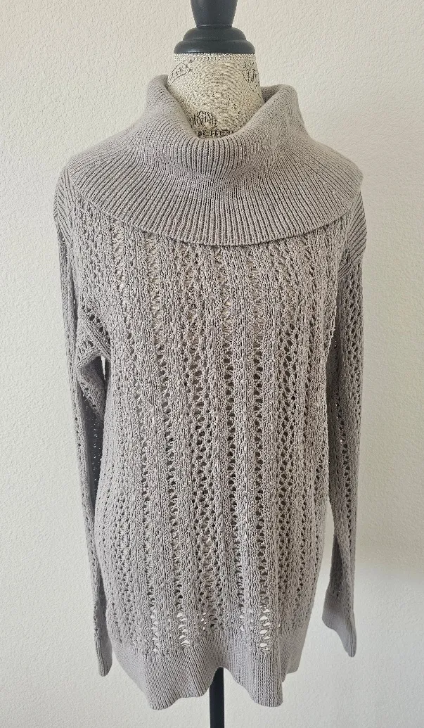Calvin Klein Long Cowl Neck Gray Knit Pointelle Sweater Size L Size L - $30 - From US