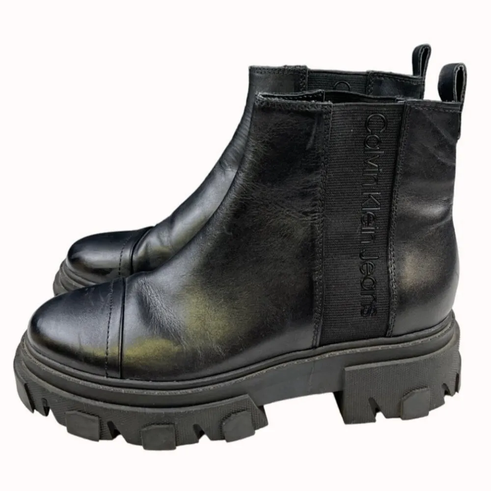 Features a slip-on styles shoes with a 1.5 inch heel lift in the model KCLORINE, a round toe, and an interesting fold like design on the front on the toes. Made of leather, man made, and textile material. Good condition: last picture shows minor signs of wear due to creasing and peeling on the outsole. This item has been cleaned, sanitized and deodorized. Features: • Shoes/Chelsea Boots Size: Womens 7 Condition: Pre-Owned Good