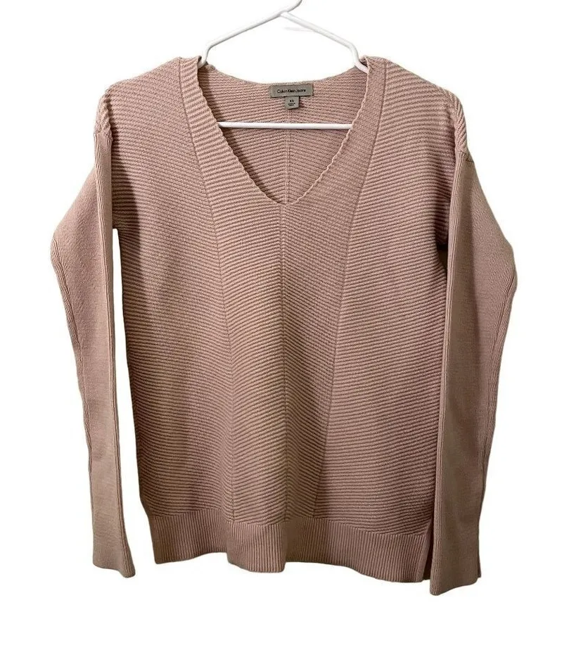 Calvin Klein Jeans tan neutral vneck sweater knit classic design ribbed sleeve Size XS - $22 - From Joanna
