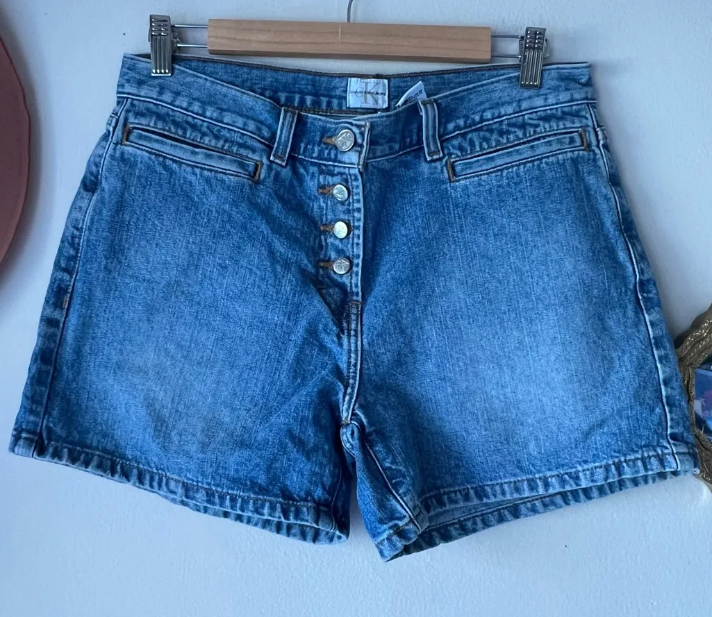 Vintage 90s‎ y2K denim jean shorts Women’s SIZE 8 front pockets button fly Blue - $28 - From Samantha