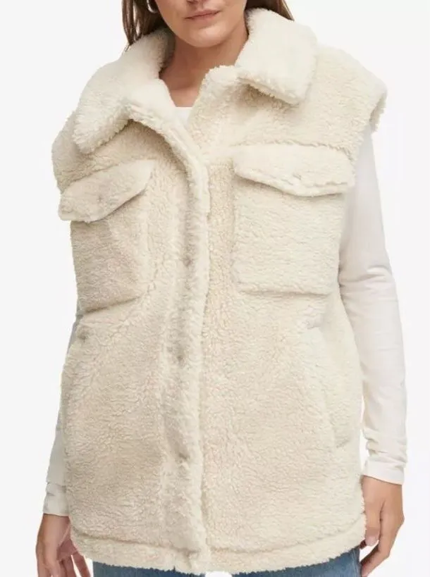 Calvin Klein Jeans Women's Snap-Front Shirt-Style Sherpa Vest Chalk NWT Add a cozy layer of style w... Show more
