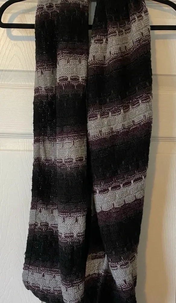 Great preowned condition Can be worn wrapped once or twice No loose ends/circle scarf Knitted