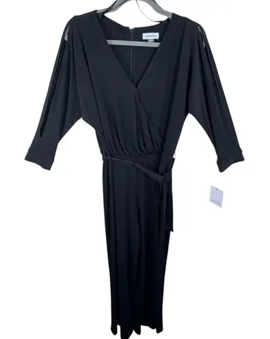 NWT. Calvin Klein Black 3/4 Dolman Slit Sleeve Stretchy Belted Jersey Jumpsuit. Has modesty snap on... Show more