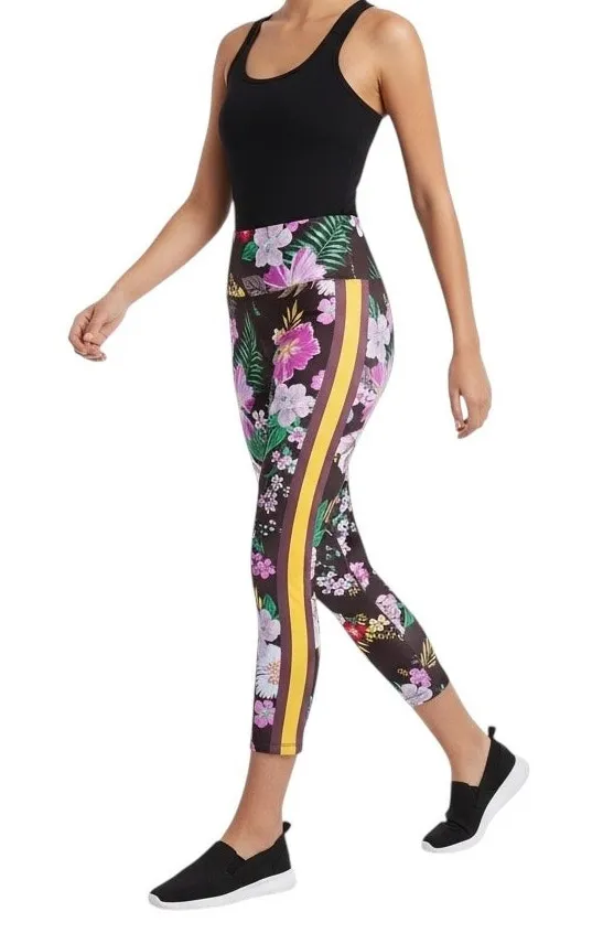 Elastic waistband Pull-on closure High rise Ankle length Bodycon fit Stretch Moisture-wicking Floral... Show more