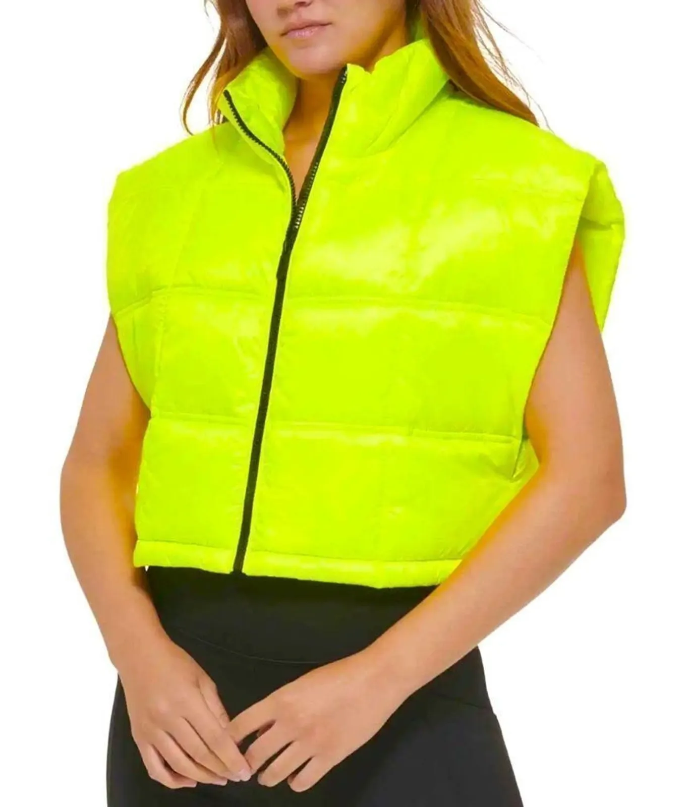 CALVIN KLEIN PERFORMANCE Cropped Mock-Neck Zip-Up Puffer Vest in Safety Yellow Size Large / Pit to p... Show more