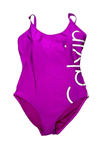 Stylish Calvin Klein one-piece swimsuit in a vibrant purple color featuring adjustable shoulder stra... Show more